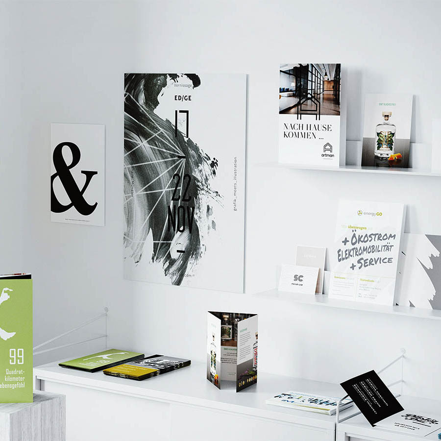 Unsere Leistung: Wir gestalten Ihre Printmedien bis zur Druckreife und übernehmen auch die gesamte Abwicklung mit der Druckerei. Sie müssen sich um nichts kümmern. Sie wählen nur noch das gewünschte Trägermedium und bekommen das fertige Produkt schnell und preiswert direkt nach Hause geliefert.