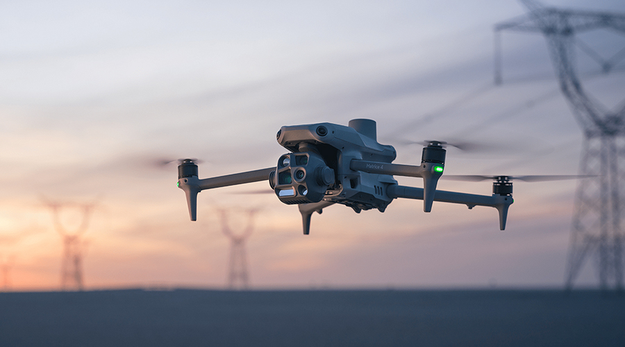 Die Matrice 4 Thermal ist das Flaggschiff der intelligenten Multi-Sensor-Kompaktdrohnen. Die Quatro-Kamera besteht aus einer Weitwinkelkamera mit einem 4/3″ CMOS-Sensor (48 MP), zwei Tele-Kameras mit 112-fach Hybridzoom und einer nachtflugtauglichen, hochauflösenden 640 Pixel Wärmebildkamera, sowie einem Laser-Entfernungsmesser mit 1,8 km Reichweite. Zu den besonders herausragenden Fähigkeiten zählt u.a. die automatische Gelände-Verfolgung für Rettungseinsätze im Gebirge und eine Zentimeter genaue RTK-Positionierung zur Objekt-Vermessung.