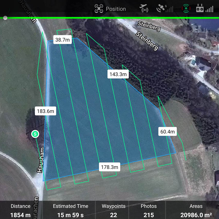 3. Wir berechnen anhand Ihrer Angaben die Distanz von unserem Standort. Sie erhalten dann eine Antwort ob die Suche am frühen Morgen des Mähtages durchgeführt werden kann. Das für den Suchflug generierte Raster Ihres Grundstücks wird bei uns archiviert und steht so jederzeit für spätere Einsätze wieder zur Verfügung.